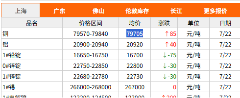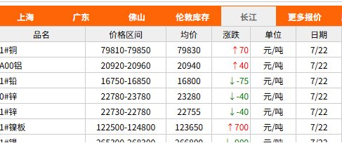 2025年7月22日 上海銅價查詢 上海現貨銅價格行情 往期銅價查詢
