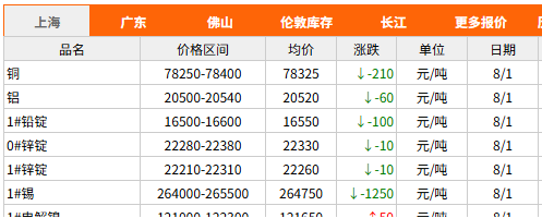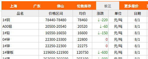 20250801上海銅價上海鋁價長江有色金屬銅價