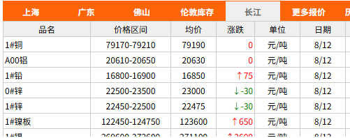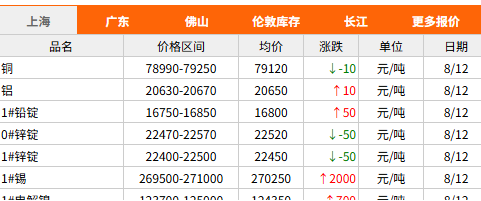 銅鋁等有色金屬價格行情