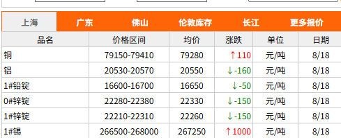 20250818上海銅價查詢廠家銅價查詢鋁價查詢往期銅鋁價格查詢