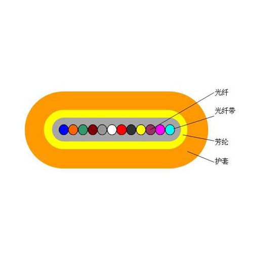 RBC帶狀扁平光纜GJFJBV使用光纖帶作為光傳輸介質,外覆一層芳綸作為受力加強單元,最外擠制一層扁平聚氯乙烯(PVC)或低煙無鹵材料(LSZH,低煙、無鹵、阻燃)護套而成。