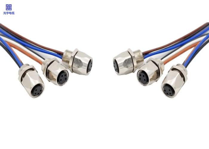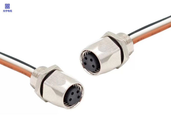圖中線束外殼采用銅/鋅合金,絕緣材料為尼龍PA66,絕緣電阻大于等于100兆歐,接觸電阻小于等于100毫歐,成型材料為PVC/TPU, 端子材質為磷銅,適用溫度為-20+80攝氏度,防水等級IP67、IP68。 可用于各個領域的工業設備。